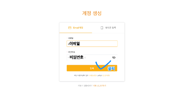 일반적으로 이메일을 예를 들면 이메일 아이디/비번 입력하면 끝!