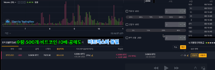 예를 들어 자신이 1BTC 보유중일때 50%를 누리면 현재 비트코인 가격에서 자신의 비트코인 50% 수량으로 설정가능한 비트코인 매매규모가 자동 설정됩니다.