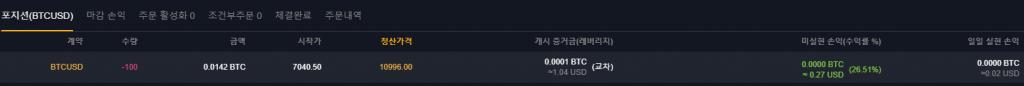 비트코인 시장 평균가가 10996에 이르면 포지션이 정리되면서 강제로 청산된다는 뜻입니다.
