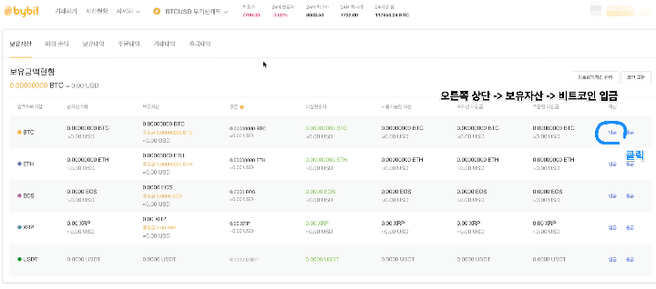 이때 바이비트 특징이 비트코인(BTC) 뿐만 아니라 이더리움,리플,이오스,테터 코인까지 입금이 가능하며 실제 알트코인 포지션 역시 해당 코인으로 잡을 수 있습니다.