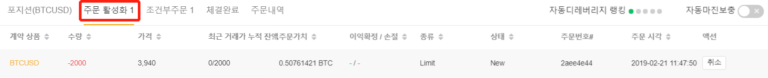 주문활성화 탭에서는 아직 체결되지 않은 주문을 확인할 수 있습니다.