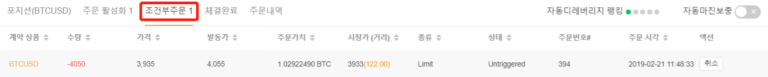 조건부주문 탭에서는 아직 체결되지 않은 조건부주문을 확인할 수 있습니다.