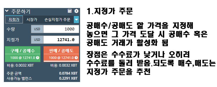 먼저 어떤 포지션 이던지 간에 매도 및 매수 는 지정가 와 시장가로 크게 나눌 수 있습니다.