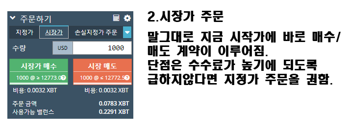 허나 시장가 주문은 바로 주문이 채결되는 장점은 있지만 수수료가 비쌈입니다.때문에 되도록 공매수던 공매도건 지정가 주문을 권해드립니다.
