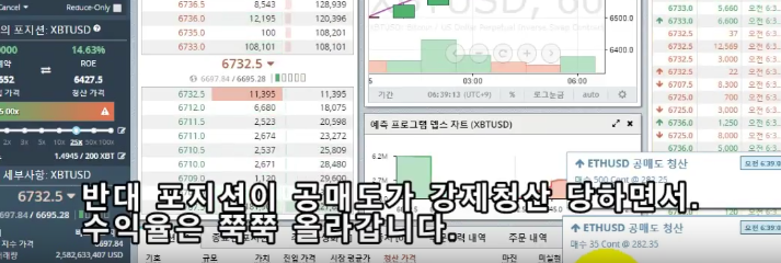 이와 중에 반대 포지션인 공매도 잡은 사람들이 강제청산 당하는 메시지가 계속 뜹니다.