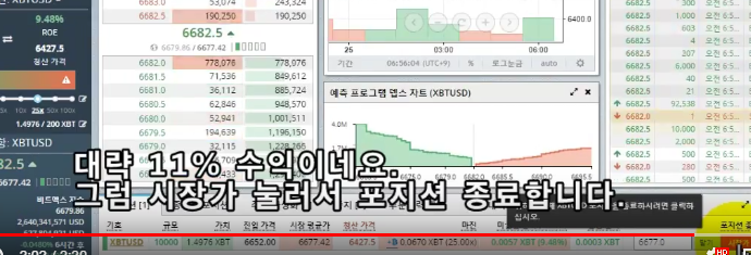 수익화 됩니다.짧은 시간에 0.0066BTC 수익 대략 5만원 정도 벌었네요.다음은 공매수입니다.