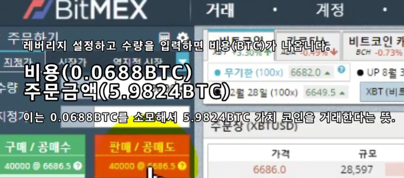 주문창을 보면 주문금액(5.9824BTC) 인데 비용(0.0688BTC) 밖에 들지 않습니다.이는 대략 90배 이상 차이로.100배 공매도를 위해 비트맥스로 부터 돈을 빌리고 수수료를 제외한 배수입니다.
