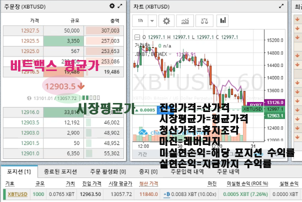다음,여기서 많이 헤깔려 하시는 부분이.시장 평균가입니다.위 이미지 속 매수/매도 체결되는 전광판 가장 중앙 크게 12903.5 보이시나요? 이게 시장 평균가로 생각하시지만.이는 비트맥스 평균가이며,실제 거래 시 기준이 되는 시장 평균가는 US달러 해외거래소들의 평균값입니다.비트파이넥스,비트렉스,코인베이스 등등 평균값으로 비트맥스 평균가 아래 작게 표시됩니다.
