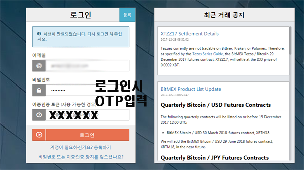 이렇게 연동이 되면,비트맥스 로그인 시 비밀번호 아래 2차인증 란이 등장하며 매번 로그인이 입력하시면 됩니다.