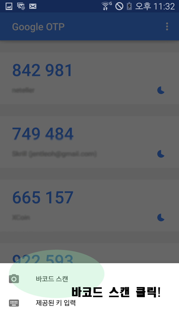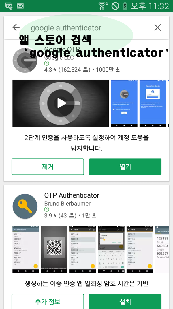 계정과 OTP로 쓰여질 자신의 핸드폰과 연동작업을 해야됩니다.먼저 앱스토어에서 구글 OTP앱을 다운받으셔야 합니다.