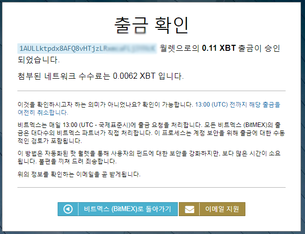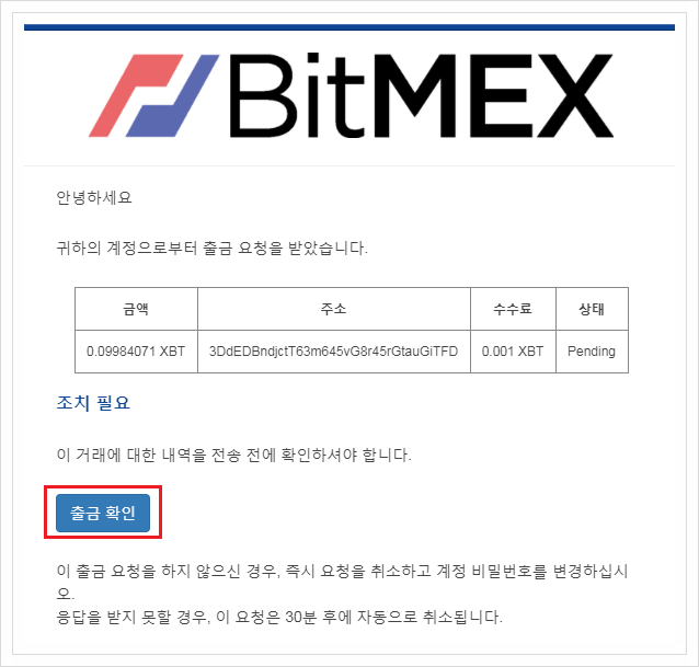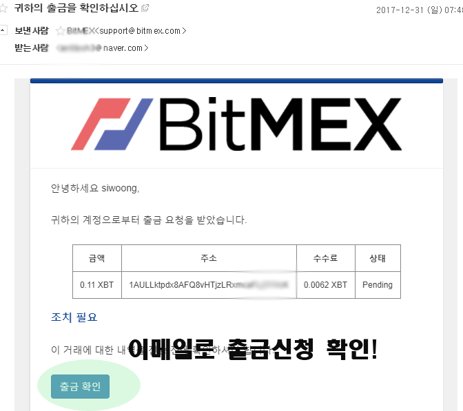 이메일 함을 확인 하면 이렇게 출금 인증이 날라 와 있을 거에요. 여기서 출금 확인 버튼을 클릭하면 완벽하게 출금 완료가 끝나는 겁니다.