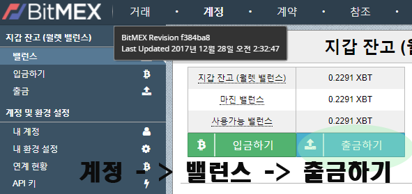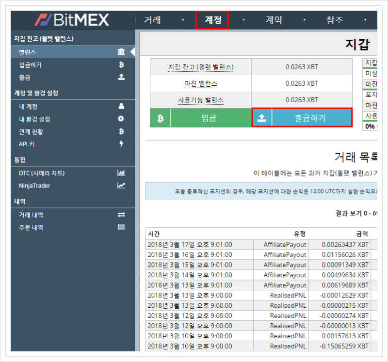 비트맥스 -> 계정 -> 밸런스 -> 출금하기