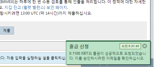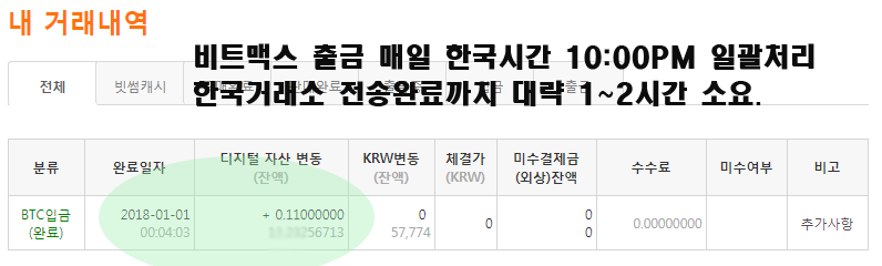 여기까지 하시면 출금신청이 모두 완료되었으며,앞으로 다가올 저녁 10:00 비트맥스에서 일괄적으로 출금처리가 되며,전송 보낸 거래소에서 받아보시는데 까지 최대 2시간 정도 소모됩니다.