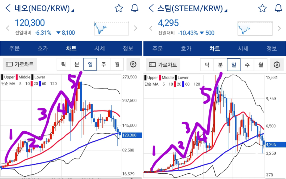 이렇게 하나의 흐름(파동)을 이론으로 정리한것이 엘리엇트 파동으로 실제 후행성으로 차트를 보다 보면 이론에 맞아떨어지는 차트을 흔히 볼 수 있습니다.
