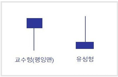 비석형을 뒤짚어 놓은 캔들 모양