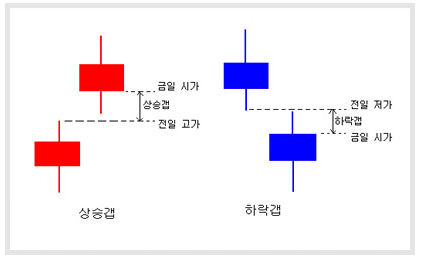 (10) 갭*상승갭: 전일 고가보다 금일 시가가 높은 경우