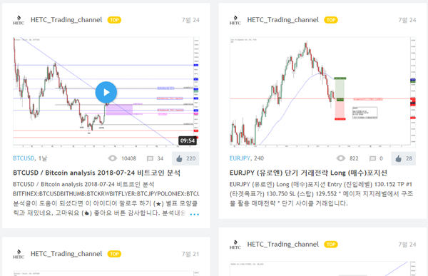 - 다른 전문 트레이너가 분석한 차트 정보 열람