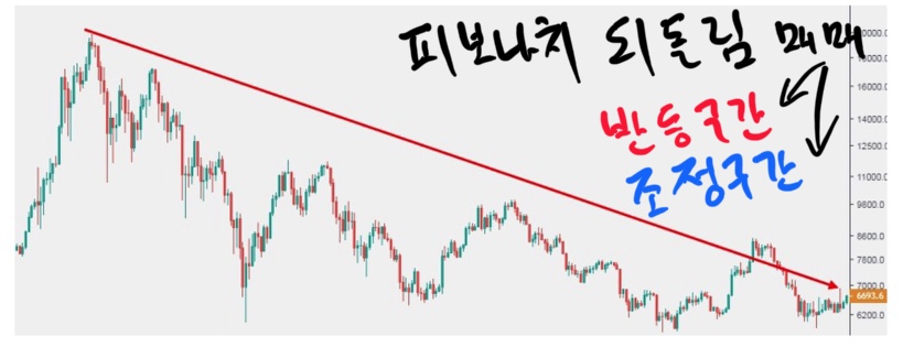 이런 피보나치 되돌림은 반등구간이나 조정구간을 예측하는데 쓰입니다.