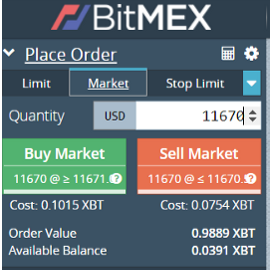 Set-up to buy 1 BTC priced at $11,670 with $1,167 at Bitmex.