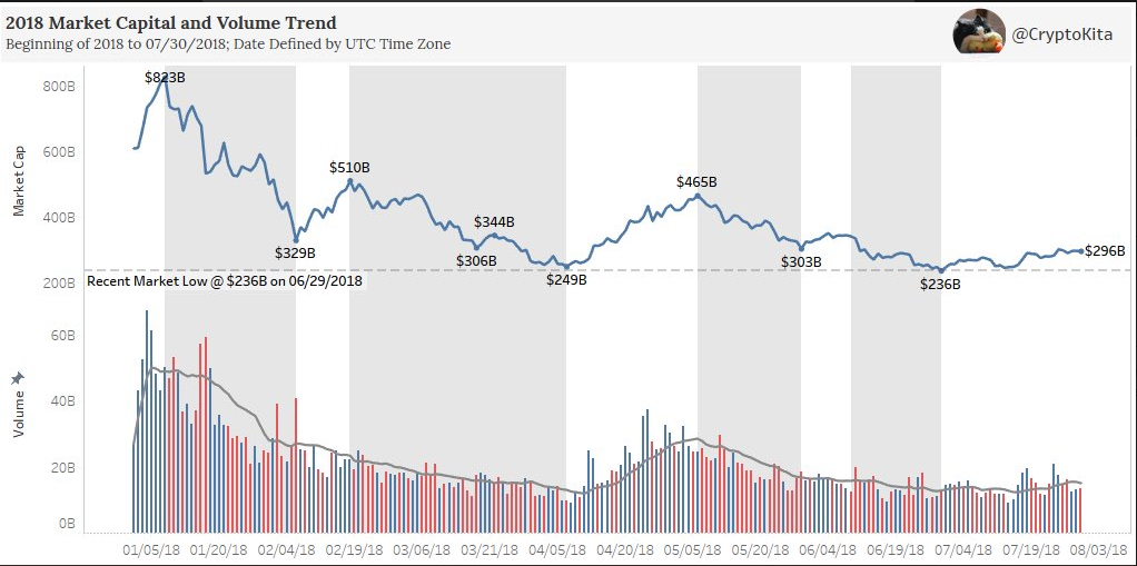The global crypto market reached its peak on 8 January 2018 of $828 billion, and then fell by 70% to $243 billion on 1 April 2018. People reacted in three ways.