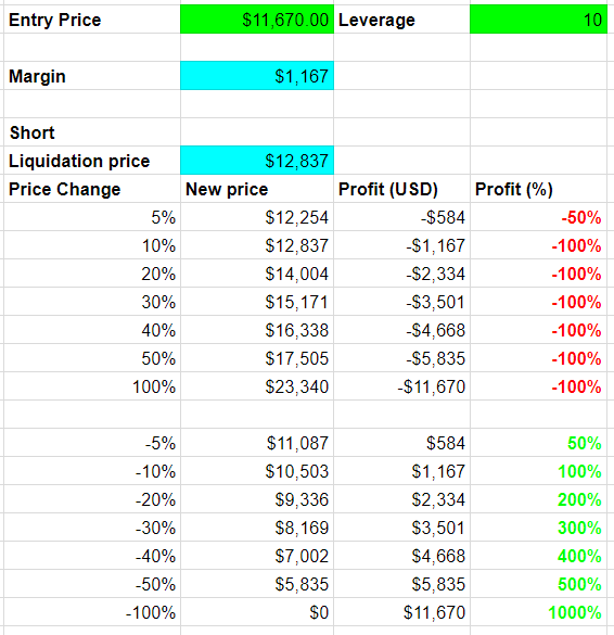 Buy 1 Bitcoin with 0.1 Bitcoin Initial Margin: Example of 10x Leverage