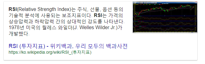 이정도로 해석하면습니다.RSI 지표는 업비트,빗썸 등 사이트에서 설정만 하시면 보실 수 있습니다.